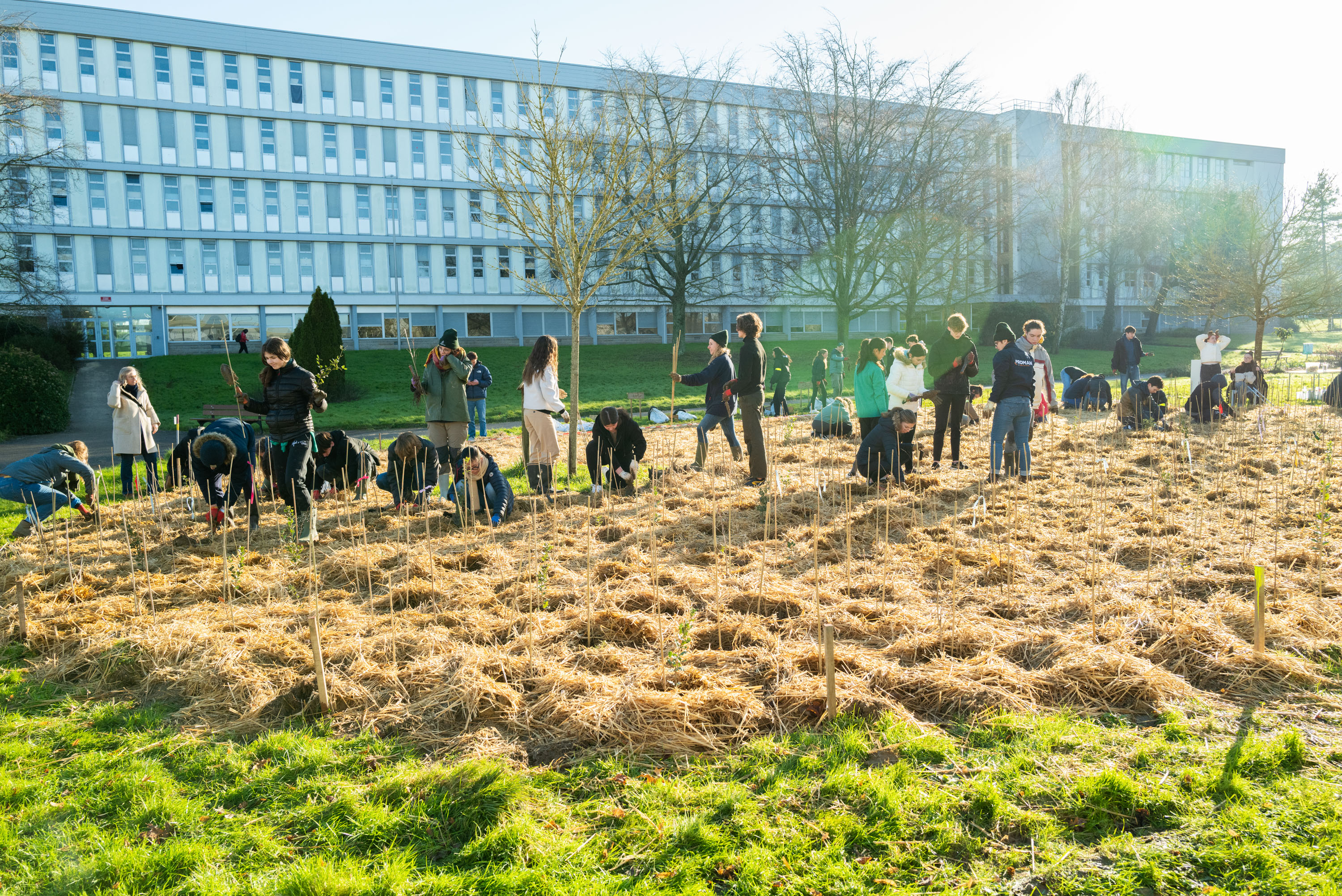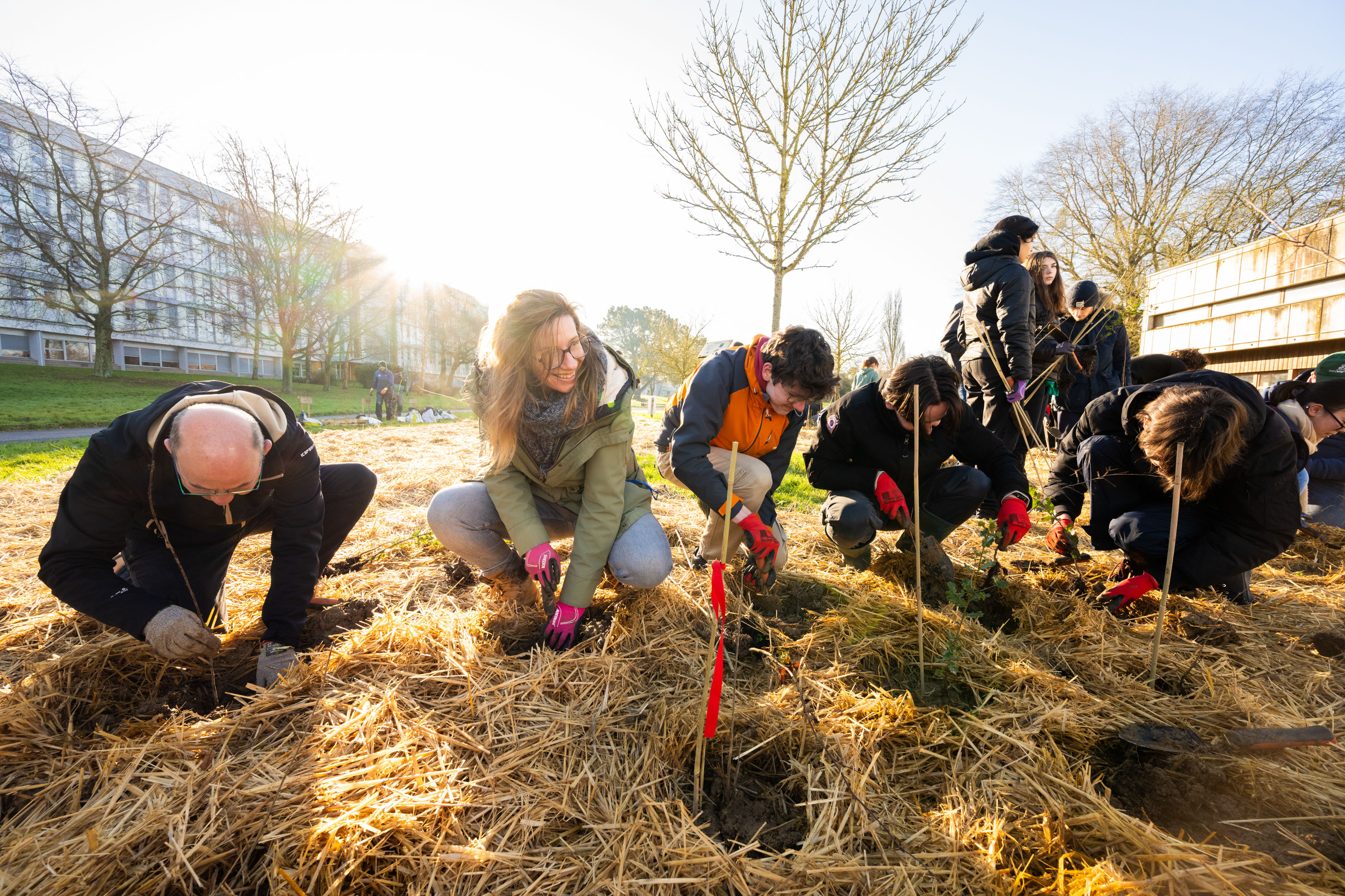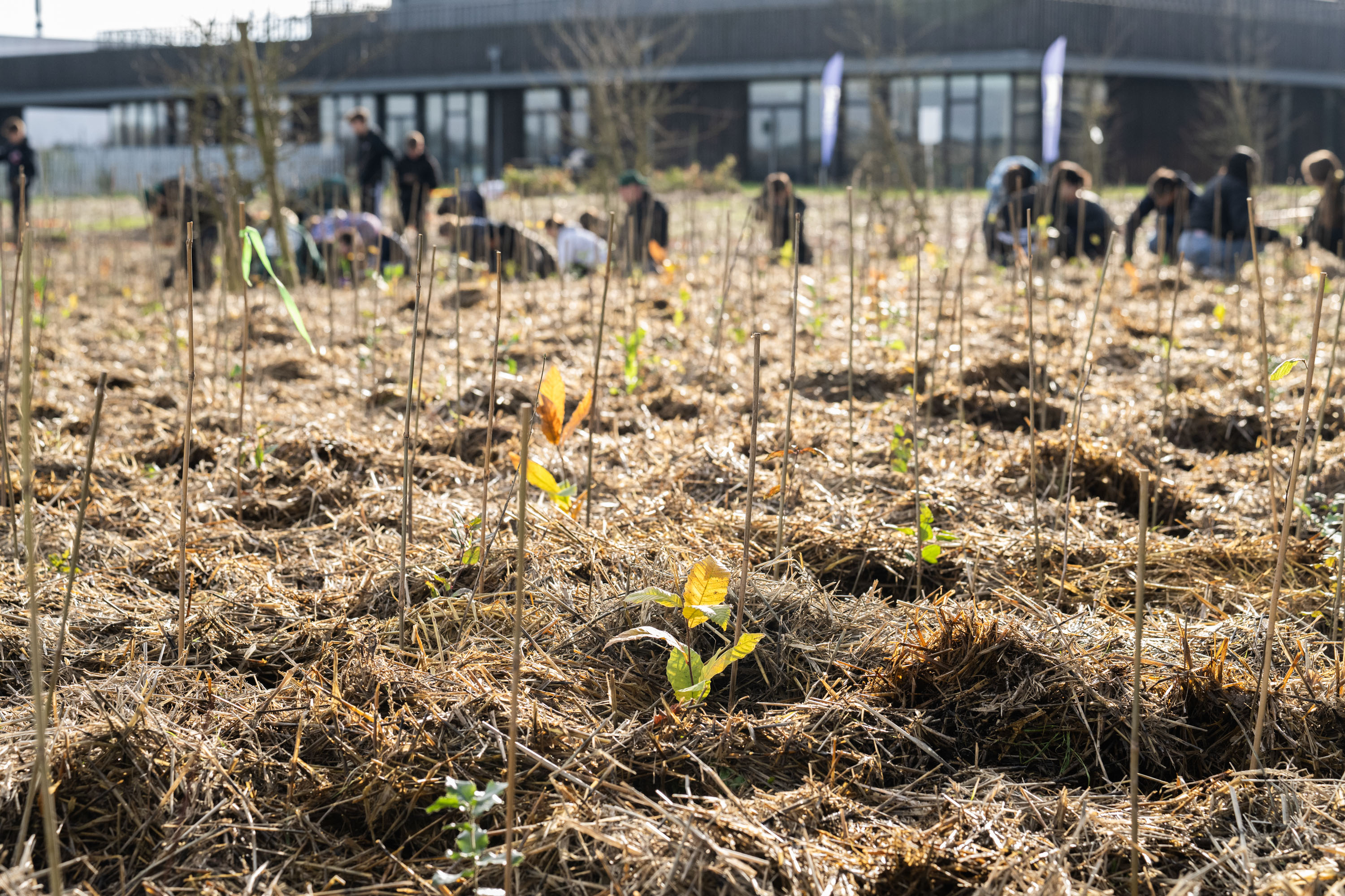 Plantation de mini-forêts à forte densité selon la méthode Miyawaki.