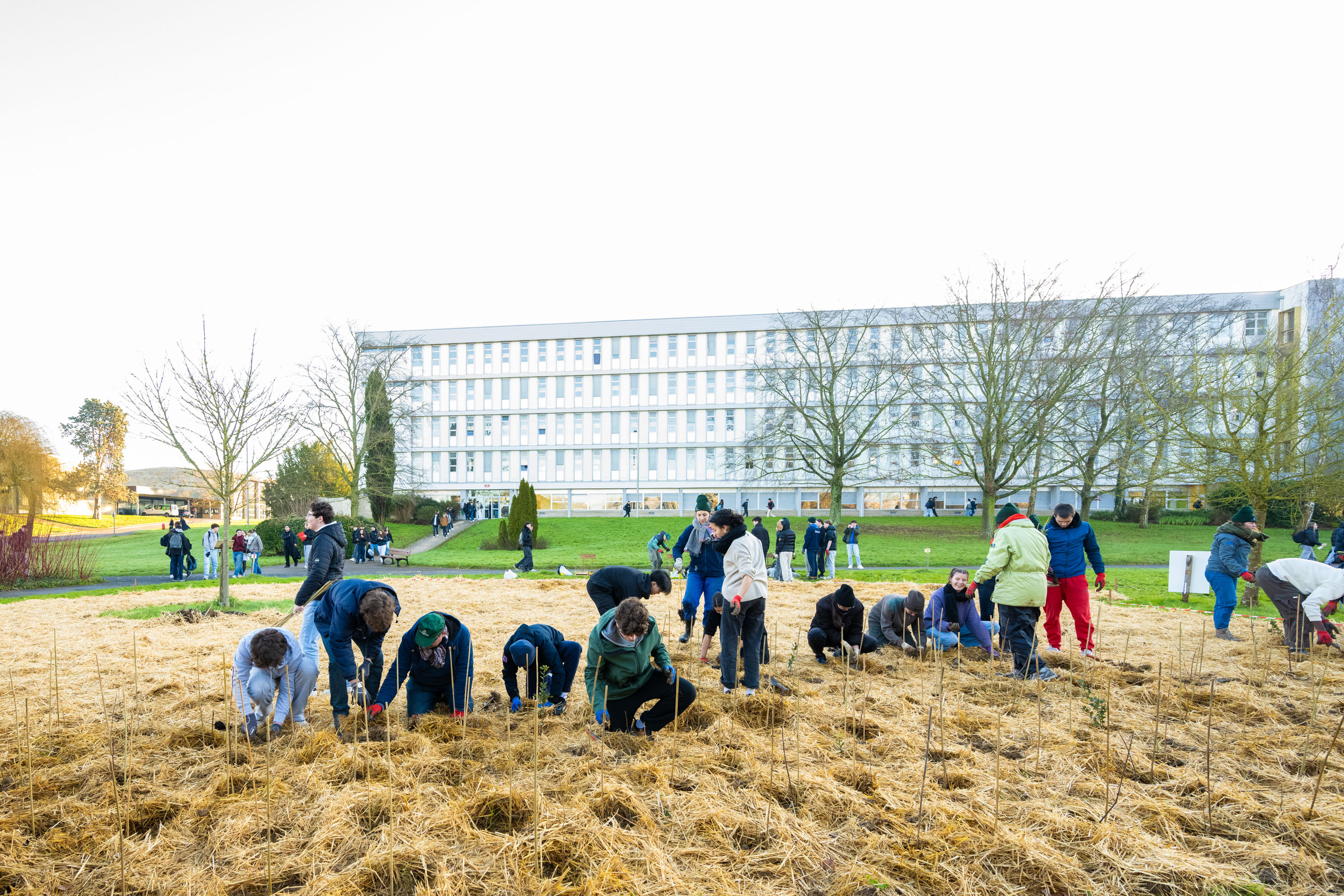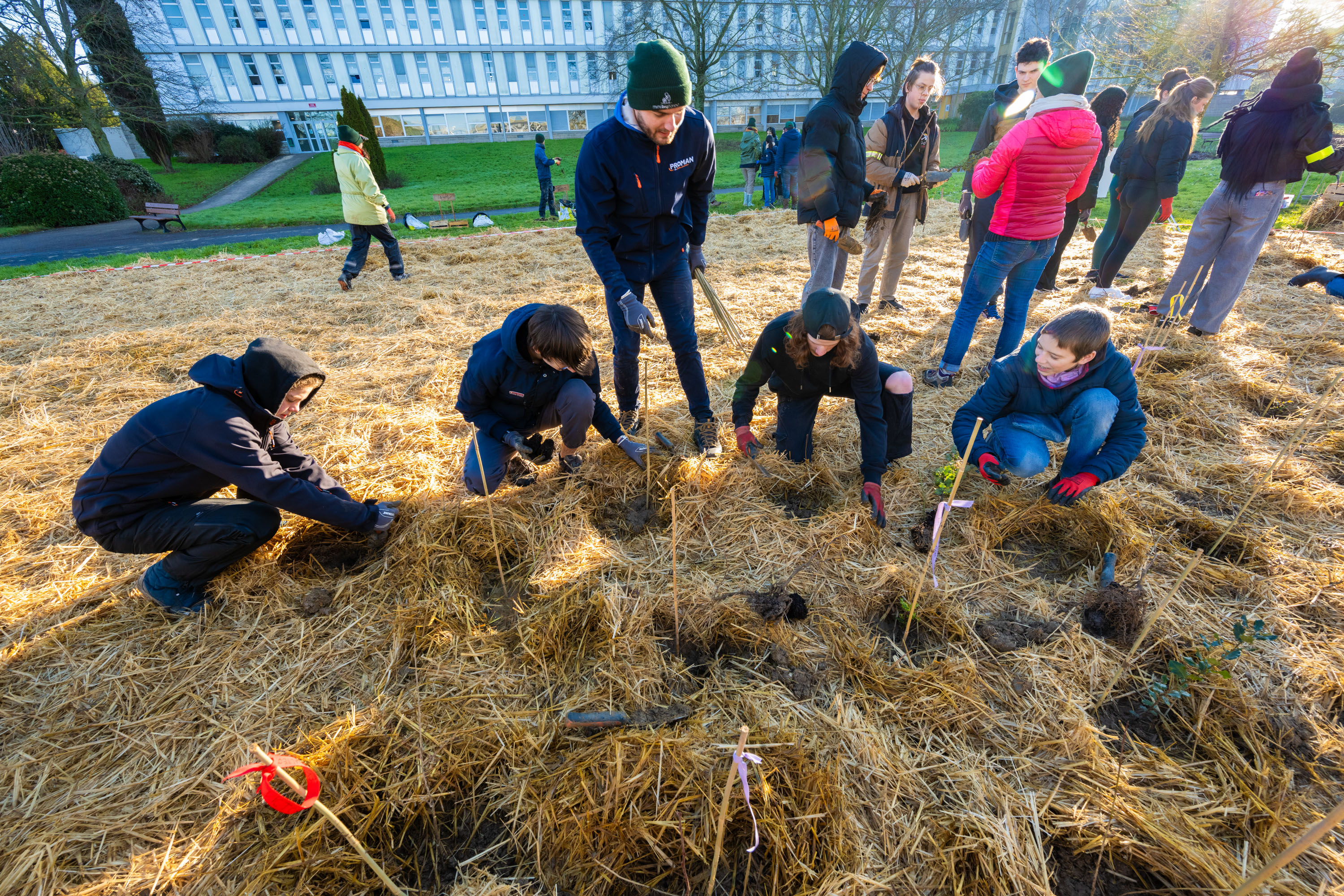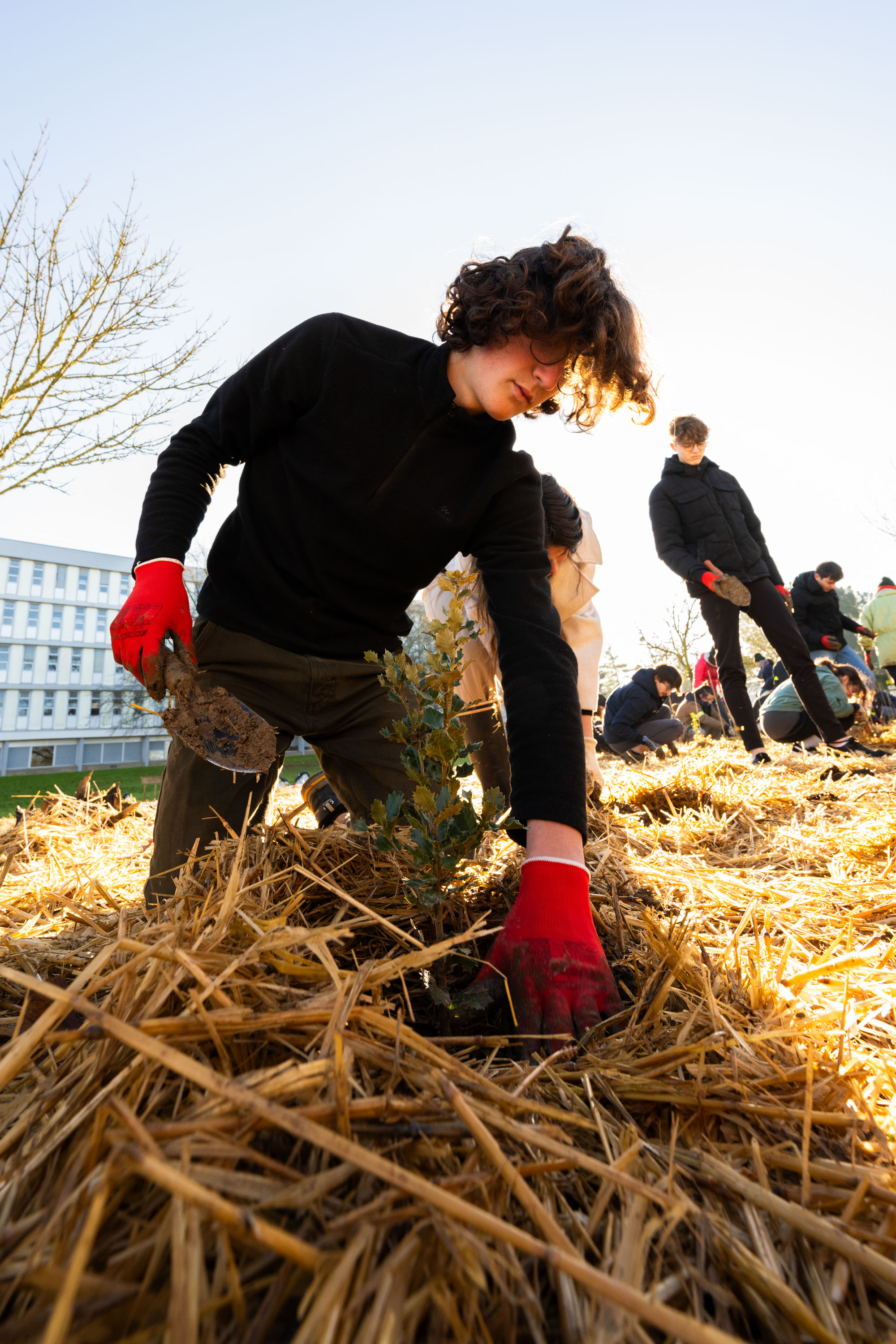 Plantation de mini-forêts à forte densité selon la méthode Miyawaki.